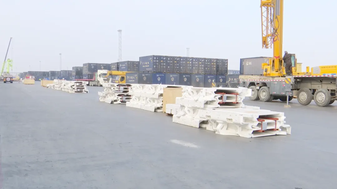新疆晶化区国际商贸有限责任公司班列运营部负责人丁洋说:“目前我们正在装运一批发往俄罗斯的大型设备。这是精河首次集结并组织发运大规模的大型设备,此次设备共装载42车,总重量达1364吨,货物从精河始发,途经阿拉山口口岸,预计10天后到达目的地。”