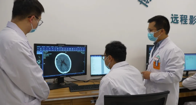 丰存珍在达勒特镇卫生院做CT,不用排队,很快就做完了。让她吃惊的是,几分钟后,她的片子就上传到博乐市人民医院远程影像诊断中心平台,镇卫生院的医生通过手机连线就能和市医院远程影像诊断中心的专家进行远程会诊。从片子上发现,右侧基底节区呈条片状低密度阴影。