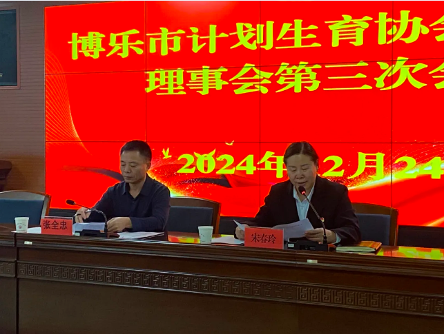 12月24日,博乐市计划生育协会第四届理事会第三次会议在博乐市妇幼保健计划生育服务中心会议室召开。博乐市卫健委领导与博乐市计划生育协会理事50余人参加会议。