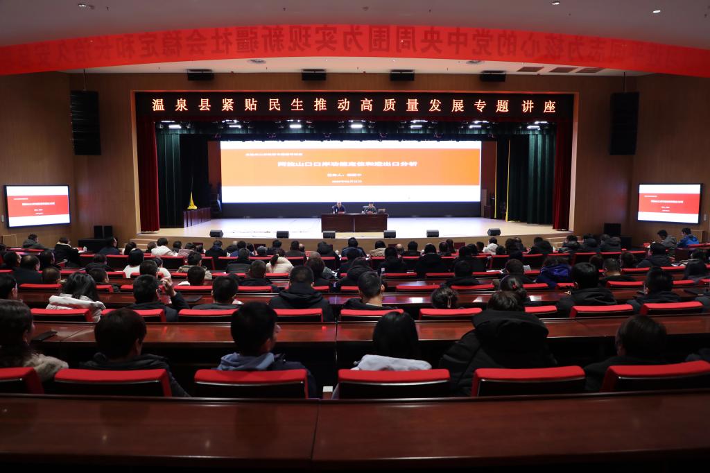 此次专题讲座是温泉县委围绕“两个区域经济一体化”和“五大重点产业发展”,充分发挥专家、学者在推动经济高质量发展方面的引领作用,通过“每季一讲”推动全县领导干部带头学经济、懂经济,形成“人人懂经济、人人促经济”的良好氛围,引导领导干部通过系统的学习、培训,全面理解和把握新时代经济高质量发展的内在要求,通过学习积极破解县域经济发展的瓶颈问题,探寻温泉县经济高质量发展的“新路子”,助力领导干部实现从“听-看-讲”到“悟-思-践”的提升,让“每季一讲”成为温泉县领导干部学习提升的精品课。