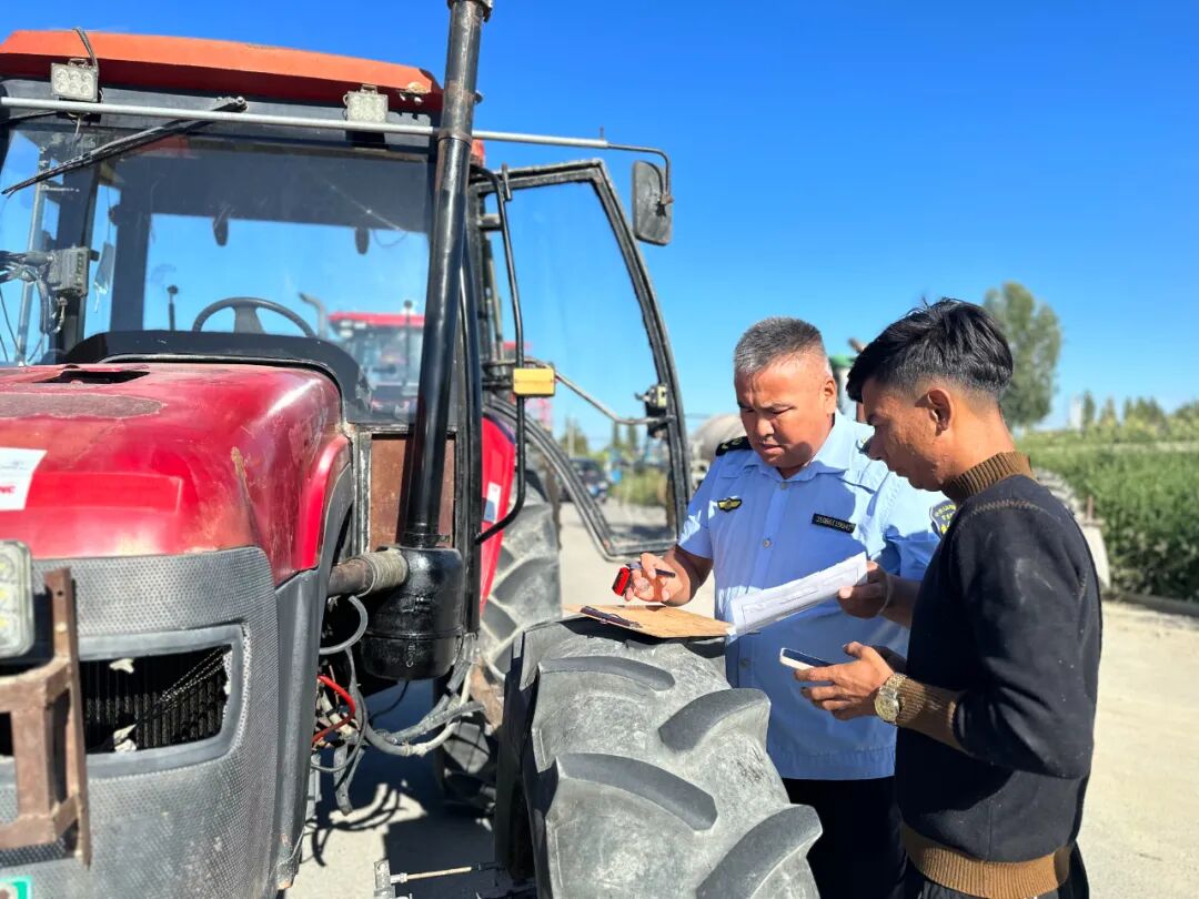 据博乐市农业农村局农业综合执法人员秦哥介绍,为了让农户在秋收季顺利开展工作,博乐市农业农村局工作人员前往六个乡镇,进村入户开展农机监视检验工作。目前,已完成50%车辆的检验检修,预计在9月10号之前全部结束。