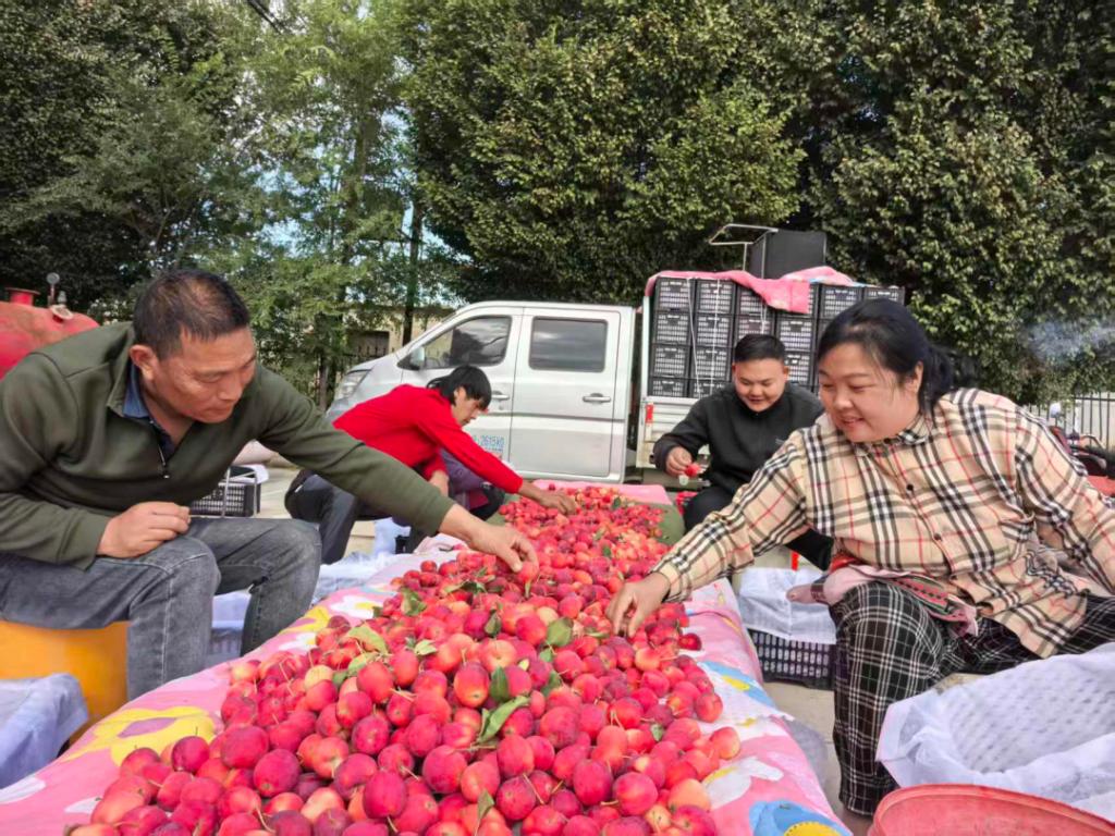 丰收果实变现是关键。为拓宽销路、卖好价钱,党支部主动牵头,联合合作社积极奔走,通过线上电商平台、线下联系外地果商和生鲜超市等多种渠道,大力推介香妃海棠果。当收购商车辆驶入村庄,看到品质上乘、规模集中的果实后,纷纷给出肯定评价和可观价格的订单。一颗颗红果,借助成熟的发展模式,真正变成了助力村民增收的“金果子”。