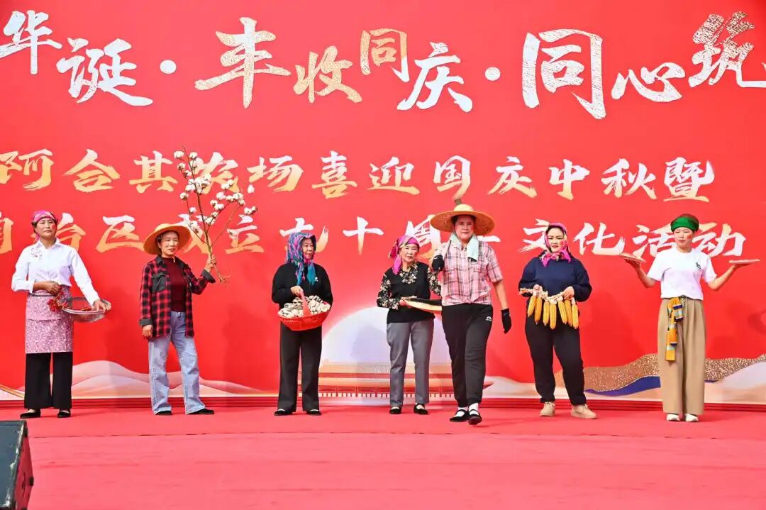火红的辣椒、金灿灿的南瓜、雪白的棉花……9月20日,阿合其农场处处洋溢着热闹欢腾的气息,一场以“月满华诞,丰收同庆,同心筑梦”为主题的文化活动拉开帷幕。群众欢聚一堂,在丰收的欢歌与节日的喜悦交织中,共赴一场家国同庆的温馨盛会,沉浸式感受新时代农场的幸福图景。