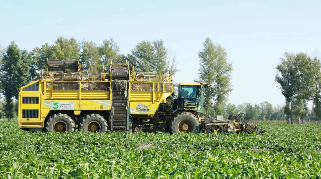 据悉,采收期间,温泉县农业农村局同步开展机械调度、质量把控和安全宣传工作,积极协调保障农机设备供应;同时,农业技术人员全程驻点指导,推广“垄作种植+水肥一体化”等先进种植模式,确保采收工作优质高效推进。采收后的甜菜将直接运往本地甜菜加工厂,经过提汁、结晶、分蜜等自动化工序,转化为白砂糖、糖蜜等产品,部分副产品还将被加工为饲料、有机肥,实现“吃干榨净”的循环利用。