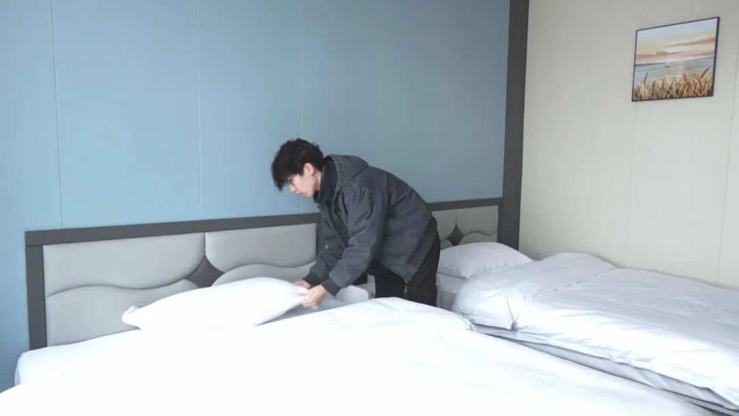在夏梦湖畔民宿内,负责人马向前正检修设施:“去年旺季设施有损耗,得赶在旅游季前收拾好。”今年,大学毕业的他,见家乡游客激增,便萌生创业想法:“去赛里木湖、伊犁的车都在五台停靠,游客多但民宿少,这是个机会。”