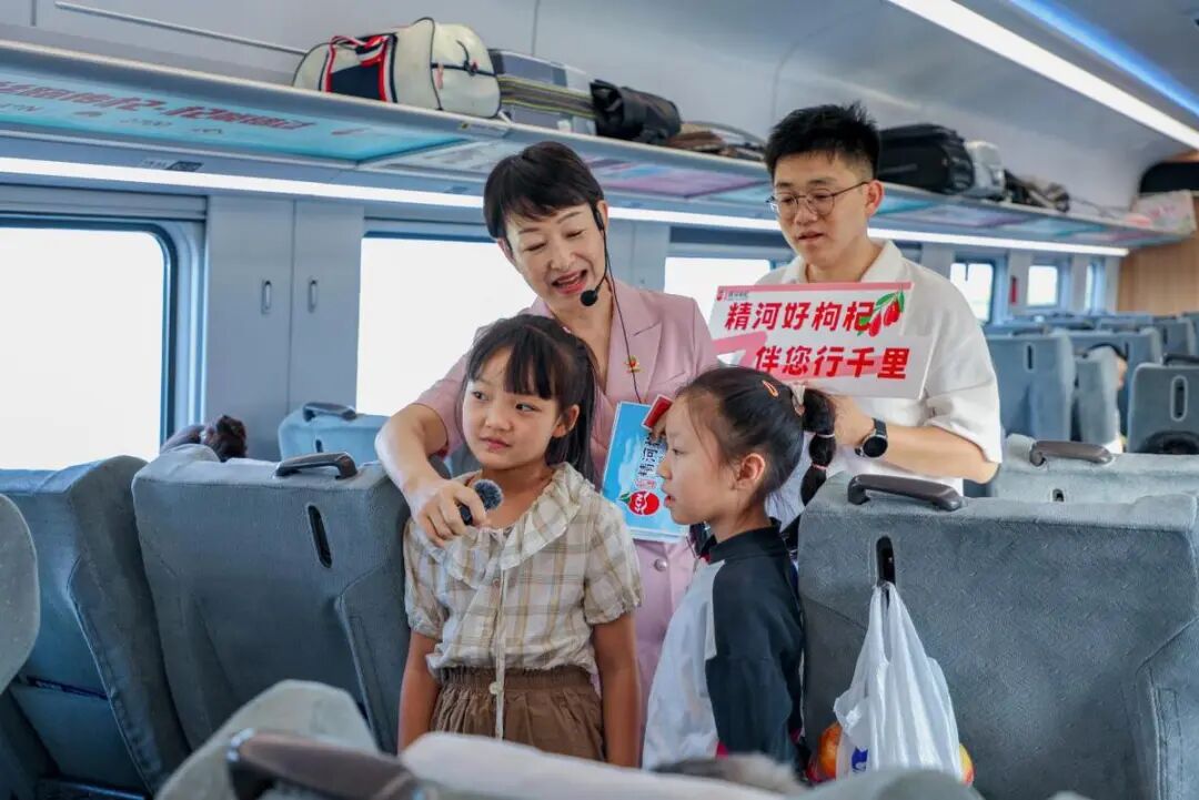 今年8月,在乌鲁木齐站,一场盛大的首发仪式吸引了众人目光,“精河枸杞 给您充电”冠名列车正式启航,其车身彩贴、门贴以及车厢内的座椅搭巾、小桌板贴等,均印着精河枸杞醒目的宣传标识。这也是精河县探索“铁路+农业”“交通+文旅”深度融合的创新实践,让精河枸杞在飞机、火车等现代化交通工具走进全国各地的千家万户。