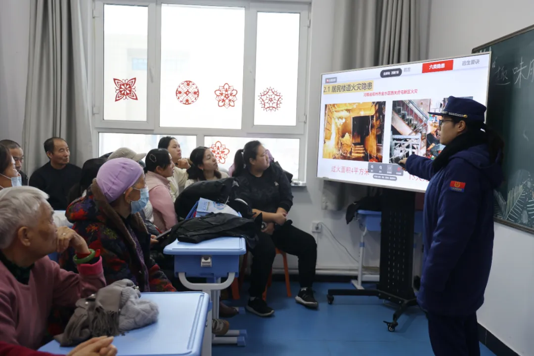 随后,市消防救援大队工作人员开展安全科普讲座,围绕居家生活、日常出行场景,详细讲解家庭火灾隐患排查、常用电器安全使用、初期火灾扑救与自救逃生技巧,以及冬季用火用电、外出交通等安全注意事项。宣讲员还现场演示灭火器正确使用方法,传授应急处理口诀,有效提升了在场人员的安全防范意识和应急处置能力。