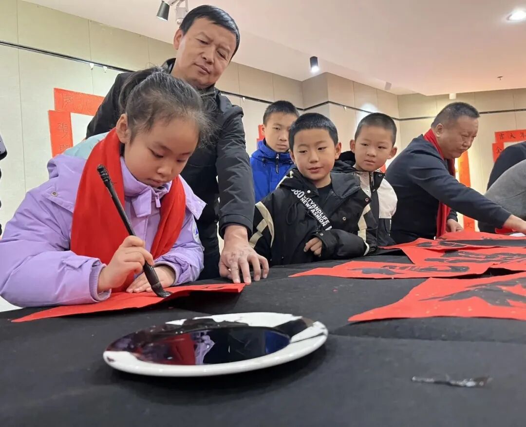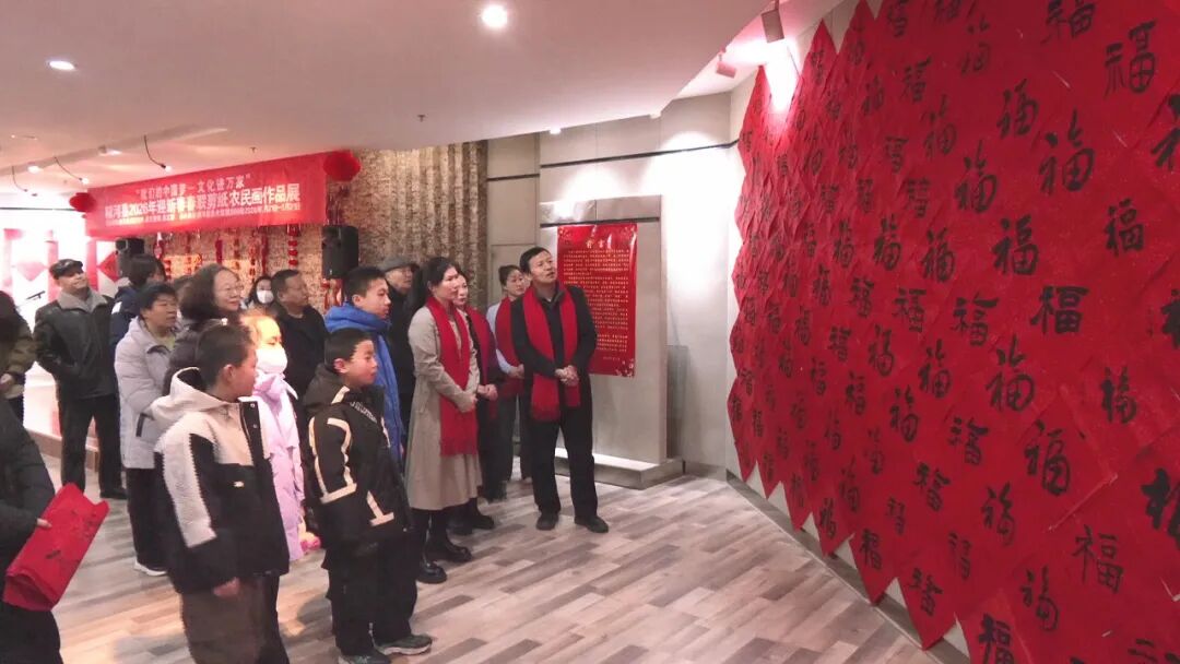开幕式上,县文体广旅局介绍作品展收稿情况。与会领导现场为居民代表送上了春联和祝福,传递了新春的美好祝愿。随后,大家共同参观展览。春联书法作品“万千众携手奋进十五五续写华章”、“银蛇漫舞送冬去金马奔腾迎春来”、剪纸作品《马到成功》、农民画作品《收获》……红彤彤的春联、栩栩如生的剪纸、各式的“福”字,洋溢着新春的喜气。