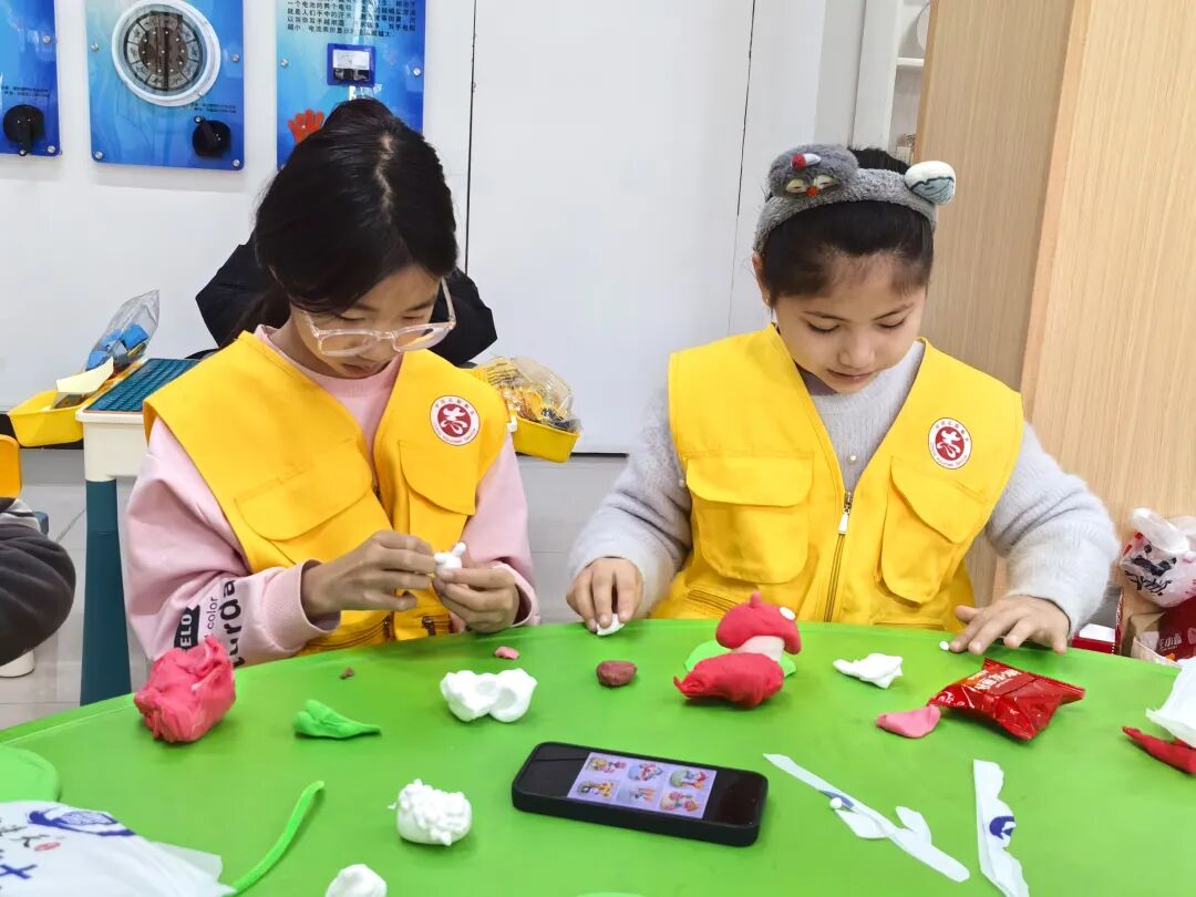 活动现场,多样的创作材料瞬间吸引了孩子们的注意力。在志愿者的悉心指导下,大家积极投入创作,有的与同伴轻声交流创意想法,有的主动请教技巧难点,有条不紊地勾勒、塑形、拼接,亲手打造出小兔子、蘑菇屋等各具特色的手工作品,现场充满欢声笑语。志愿者们穿梭其间,及时答疑解惑、提供协助,全力助力每个孩子完成专属作品。