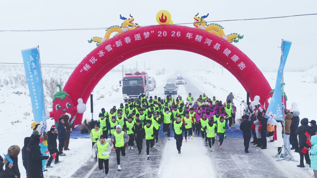 1月31日上午,“畅玩冰雪・新春逐梦”2026年精河县健康跑活动在巴音那木冰雪乐园开赛。来自全疆各地的200余名跑步爱好者齐聚精河,在白雪皑皑的赛道上展开竞逐,用运动激情点燃冬日活力。