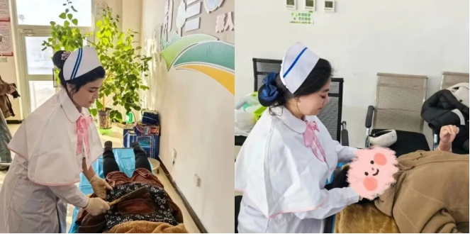 值得一提的是,此次活动特别突出了中医药特色优势。中医康复科的医护人员现场大力推广中医护理适宜技术,成为当天活动的亮点。护理人员为村民体验了火龙罐、穴位贴敷、火熨术、中药面膜以及颈部、耳部刮痧等特色项目。独特的疗法、显著的效果,让村民们啧啧称赞。“以前只知道吃止痛药,没想到这火龙罐一做,脖子立马松快多了,中医真是太神奇了!”刚刚体验完治疗的李大爷竖起大拇指说道。