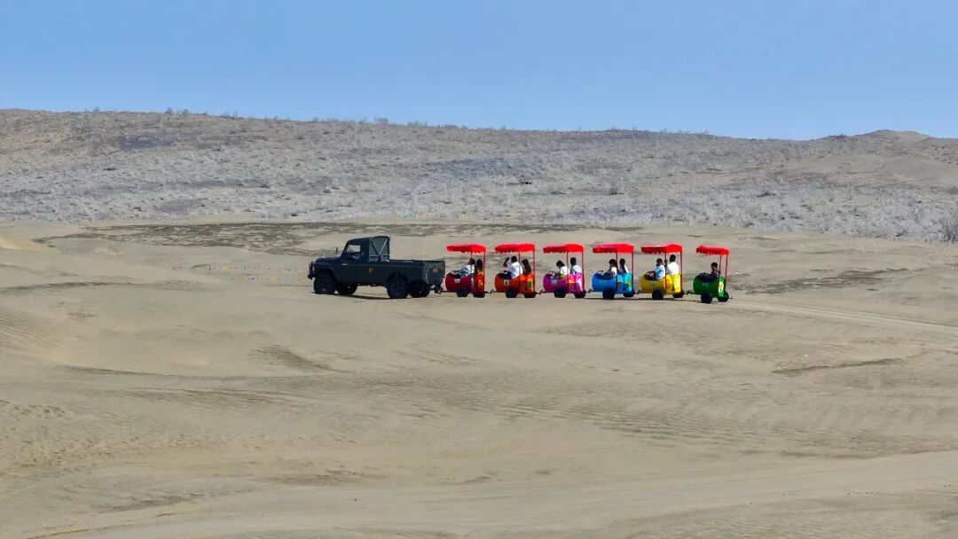景区新增的“沙漠大脚怪”项目更是凭借独特魅力,成为新晋打卡点。凭借超大越野轮胎,能在连绵沙丘间平稳翻越、肆意驰骋,让游客饱览浩瀚沙海的壮美全景。“我是被名字吸引来的,原来是车的‘脚’又高又大,非常有意思,体验感非常好。”游客马雨婷体验后说道。