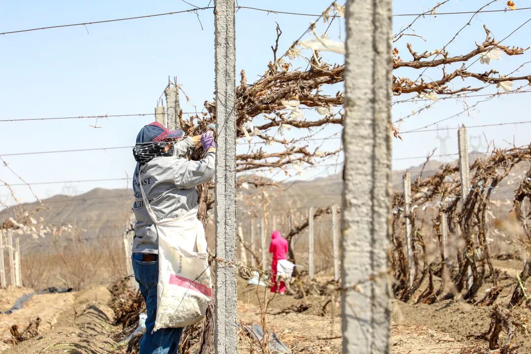 据了解,该公司主营红提、克瑞森等优质葡萄种植,总面积达1100余亩。近年来,企业坚持标准化种植理念,通过控产提质、优化架式、节水滴灌等一系列科学技术手段,不断提升葡萄品质与种植效益。精细化管理下,公司去年实现经济效益700余万元,成效显著。今年,公司提前谋划、主动作为,趁着气候回暖的有利时机加快推进春季管护,为葡萄全年稳产增收打好提前量。