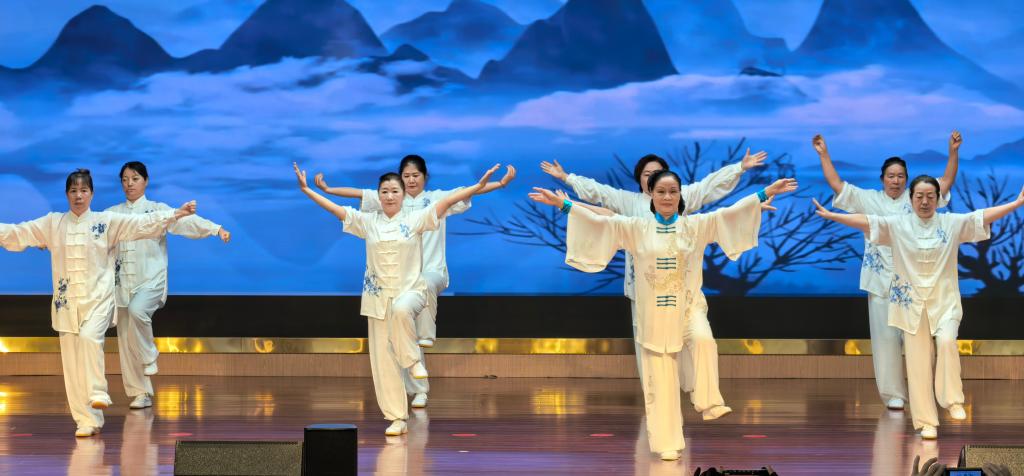 其中,江格尔弹唱《洪古尔赞》、托布秀尔合奏《新时代》等极具地域特色的节目纷纷亮相,尽显民族艺术的丰富魅力与深厚底蕴。八段锦《气养身心》、太极扇《扇舞乾坤》教学展演,展示了“气沉丹田” 的养生精髓。这些节目不仅传播了主动健康理念,更吸引众多老年学员参与体验,形成了“教学—展示—普及”的良性循环,让健康的生活方式在社区中生根发芽。经过激烈的角逐,一批优秀作品脱颖而出。博乐市光博苑社区选送的蒙古短调联唱《心中的歌献给党》、博乐市锦绣社区选送的舞蹈《欢歌起舞》等优秀作品成功晋级优秀成果展演。这些作品,是老师们辛勤付出的结晶,是学员们对艺术的执着追求的见证,更是博尔塔拉开放大学社区教育成果的生动体现。