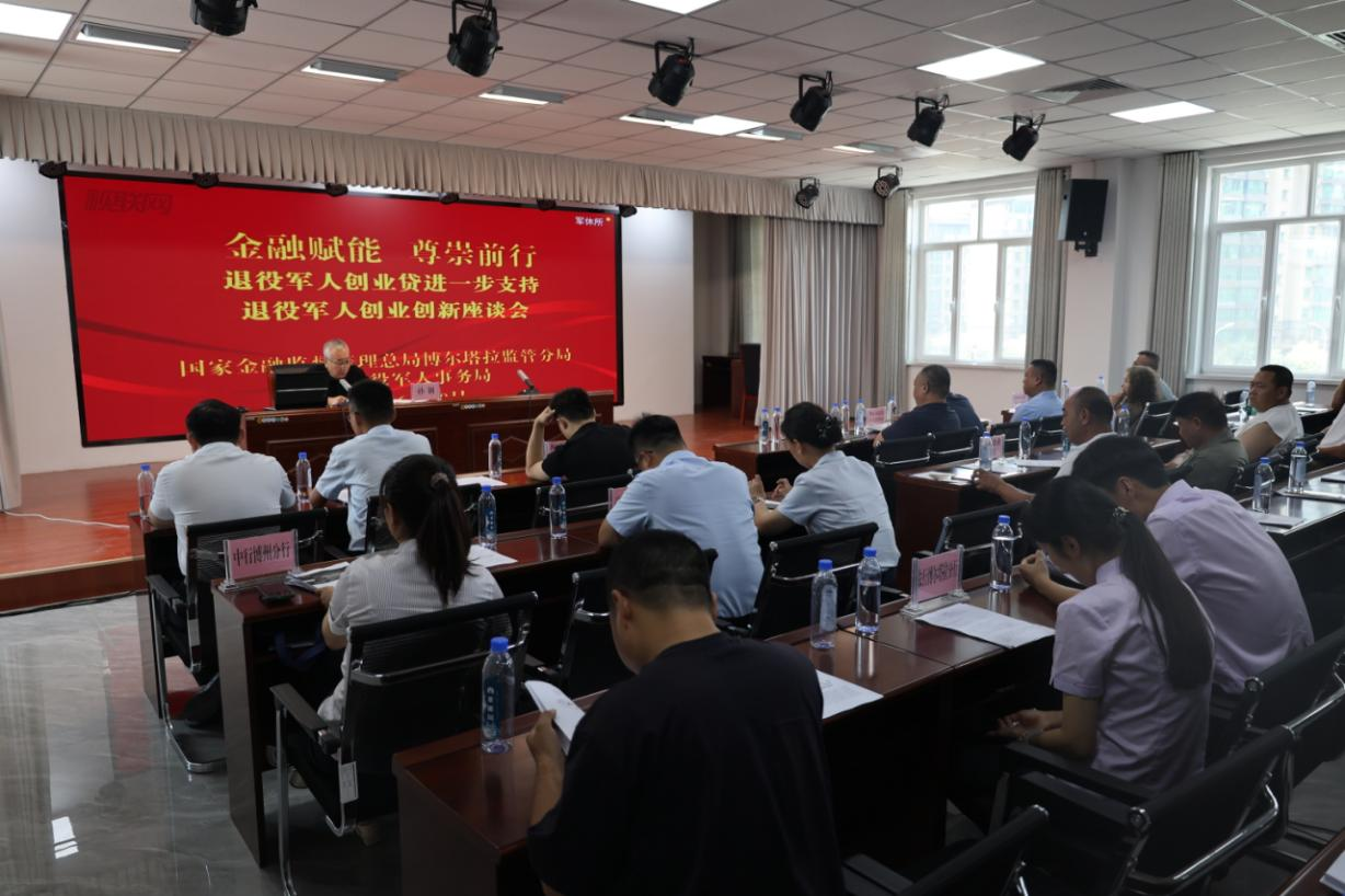 近日,为推动退役军人实现高质量就业,自治州退役军人事务局组织开展了“金融赋能 尊崇前行”退役军人创业贷进一步支持退役军人创业创新座谈会。金融监督管理总局博尔塔拉监管分局、中行博州分行、工行博州分行、邮储银行博州分行、农行博尔塔拉分行相关人员及自治州部分军创企业、退役军人个体工商户等80余家代表参加会议。