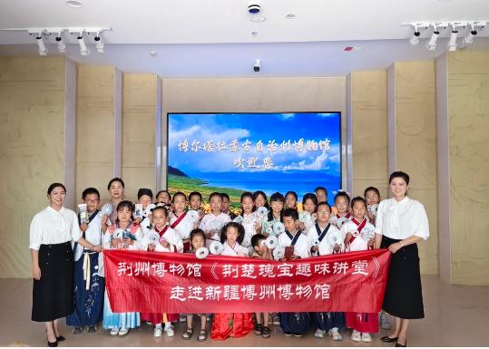 为深入开展文化润疆,积极推进鄂博两地文化交往交流交融,助力博州博物馆为广大青少年提供更为丰富的社会教育活动,博州博物馆邀请荆州博物馆社教部来博实地指导社教活动的开展。6月23日上午,围绕此次引进的荆州博物馆外展《楚玉撷珍—荆州出土楚国玉器展》,开展“玉见楚国”社教活动,博乐市第七小学的20名学生参与此次活动。