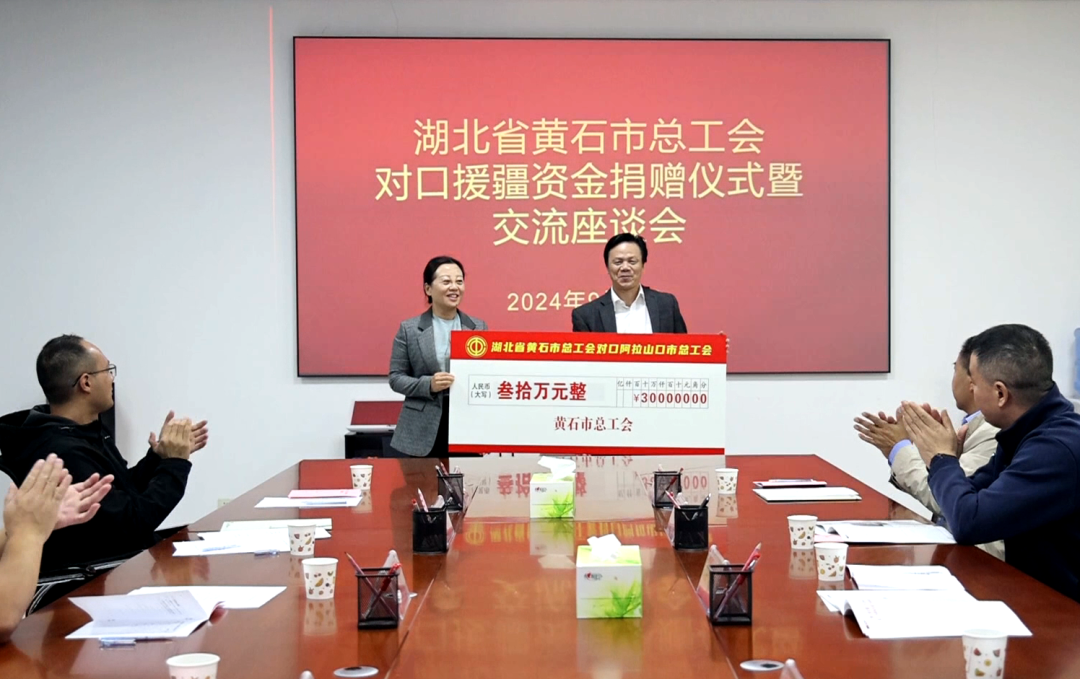 随后,黄石市总工会向阿拉山口市总工会捐赠援助资金30万元,鼓励市总工会再接再厉,继续发挥工会职能,加强职工队伍建设,提升职工技能水平,推动工会工作提档升级,更好地助力地方经济社会高质量发展。
