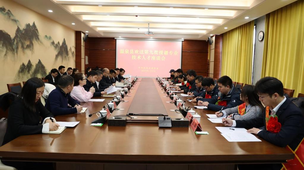 1月5日,温泉县欢送第九批援疆专业技术人才座谈会在圣泉二期召开。县委书记潘志宝出席会议并讲话。县委副书记、县长白云龙主持座谈会。