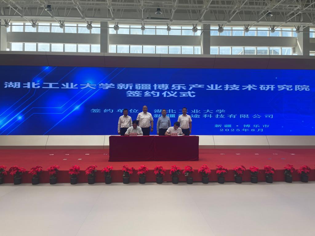 2025年8月12日,湖北工业大学与新疆数途科技有限公司共建博乐产业技术研究院签约仪式成功举办。湖北工业大学、博乐市人民政府及州市科技局相关领导出席签约仪式,博乐市党委常委、副市长温荣主持仪式活动。产业技术研究院的建立是博乐市深入贯彻习近平总书记关于科技创新的重要论述和发展新质生产力的重要指示要求、推动科技创新与产业创新融合发展、落实第十次全国对口支援新疆工作会议精神又一具体实践。