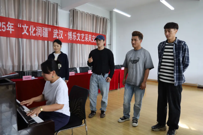 活动期间,两地在多文艺领域展开深度交流。音乐创作交流会上,武汉歌舞剧院国家一级作曲程杰分享创作经验,从旋律构思到和声编排进行深入浅出讲解,让博乐学员收获颇丰。武汉市舞蹈家协会理事、武汉歌舞剧院教学部主任洪涛现场指导,从肢体语言表达、舞蹈情感传递等方面提专业建议。此外,在文学创作、美术绘画等方面,双方也充分探讨交流,将深入博乐基层体验生活,以笔为媒记录当地壮美风光与人文风情。