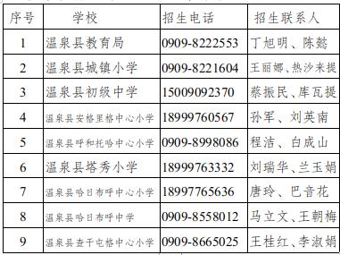 六、温泉县教育局、各中小学报名咨询电话