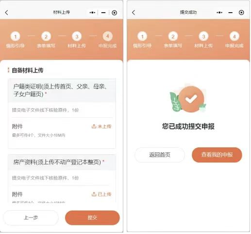 在材料上传环节上传所需申请材料,检查无误后点击提交