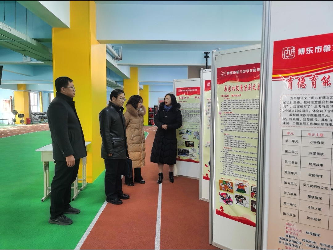 丁鹏飞主任在州教育局副局长李东梅陪同下对自治区级示范校博乐市第九中学、精河县第二中学,国家级教育教学改革实验校温泉县哈日布呼中心小学进行实地调研和座谈,通过参观校园环境、听取国家级教育教学改革实验区博乐市及三所示范校工作汇报,了解并肯定了示范区、示范校前期工作推进情况,并结合学校的实际进行了有针对性的点评,给出了指导意见。各学校主要领导就创建工作存在的问题与丁鹏飞主任进行了深入的探讨和交流,座谈会互动气氛真诚而热烈。