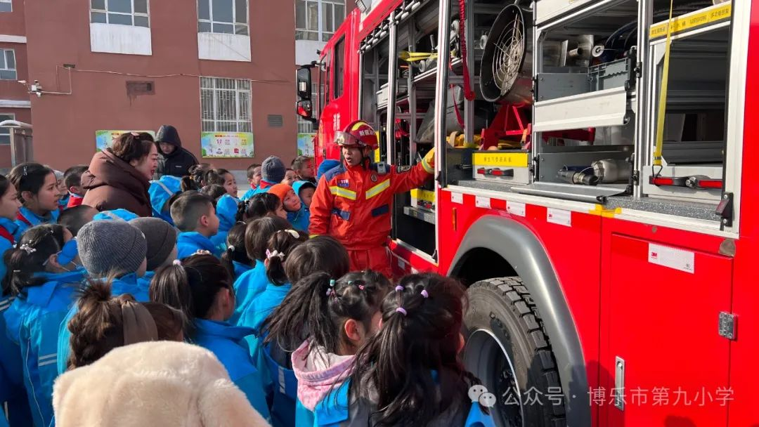 博乐市第九小学消防员与学生们互动