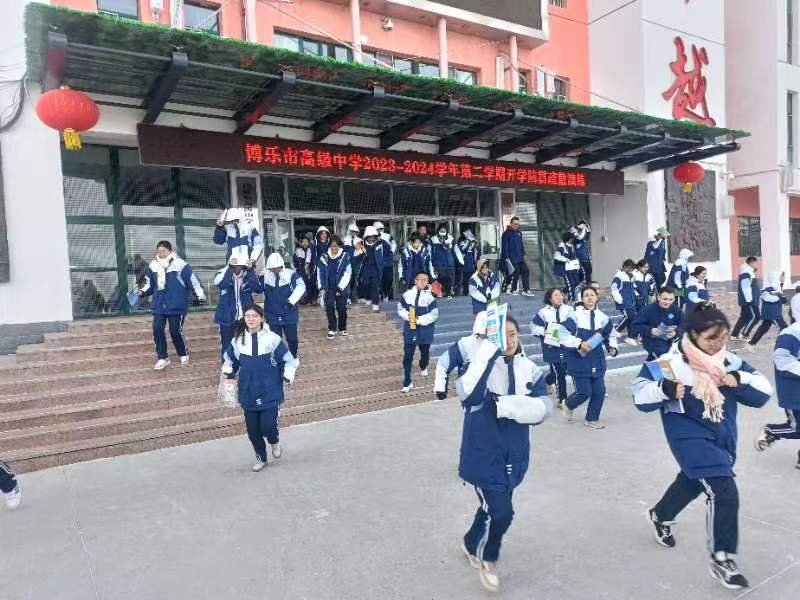 博乐市高级中学开展防地震应急演练
