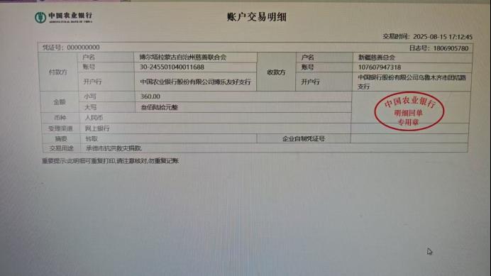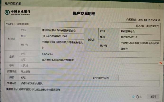 2025年8月4日-15日,博州慈善联合会共募集捐款13652.66元,8月15日已全部汇转新疆慈善总会,由新疆慈善总会统一捐赠给承德市慈善总会。现将捐赠情况向社会公示,接受各级部门及社会各界的监督。