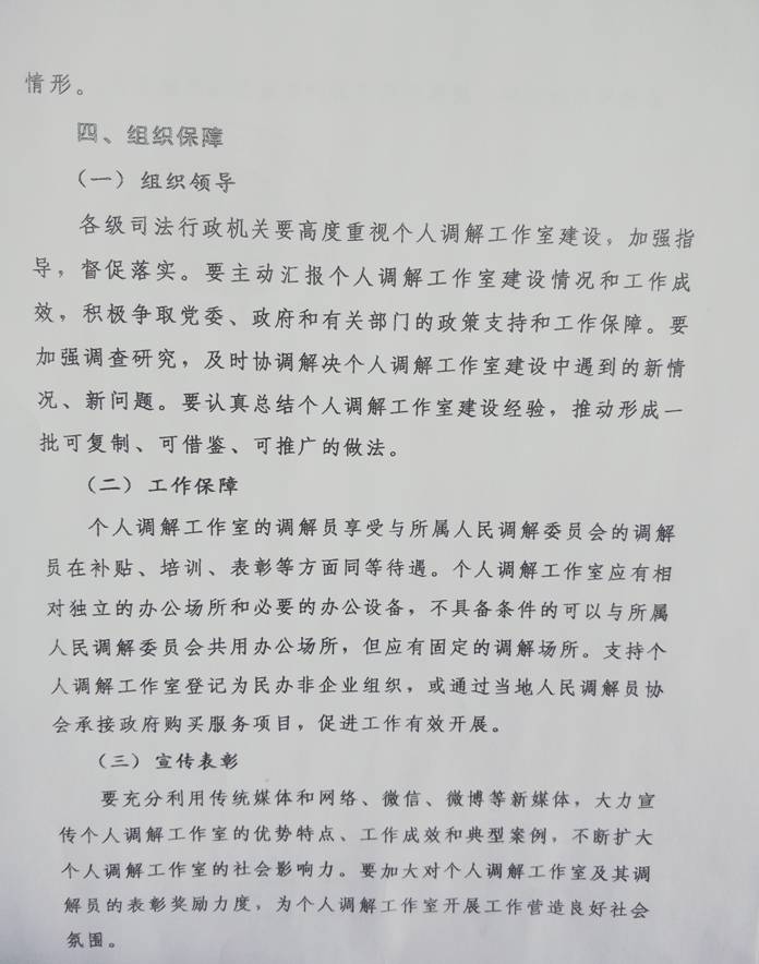 个人调解工作室是传统调解组织形式的创新发展,是基层调解组织触角的有效延伸,是提升人民调解员队伍素质的有效方法,对于排查化解基层社会矛盾纠纷,践行全面依法治国新理念新思路新战略,筑牢基层法治建设,推荐法治新疆、和谐新疆和平安新疆建设具有重要的基础性作用,各级司法行政机关有切实提高政治站位,强化责任担当,把个人调解工作室建设摆上重要议事日程,作为坚持发展“枫桥经验”实现矛盾不上交,推进自治州人民调解工作创新发展的主要任务,抓紧、抓实、抓出成效。