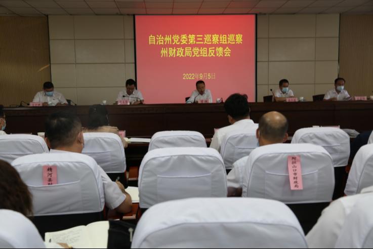 根据自治州党委关于巡察工作的统一部署,9月5日下午,自治州党委第三巡察组在州财政局召开党组巡察反馈会。州党委常委、人民政府常务副州长曾健同志,州党委巡察工作领导小组成员、州纪委常委、州党委巡察办主任曲志国同志,自治州党委第三巡察组副组长王宏伟同志出席会议并讲话。州纪委监委第二监督检查室主任李四化同志,州纪委监委派驻州政办纪检监察组组长项慧娟同志,州党委意识形态专项检查组负责人、州党委网信办副主任周泉同志,州党委组织部干部二科科长、一级主任科员但伟同志,州党委机要保密局宣传法规科科长李乘龙同志,州财政局全体干部职工,各县市财政局主要负责人,离退休干部代表参加了会议。