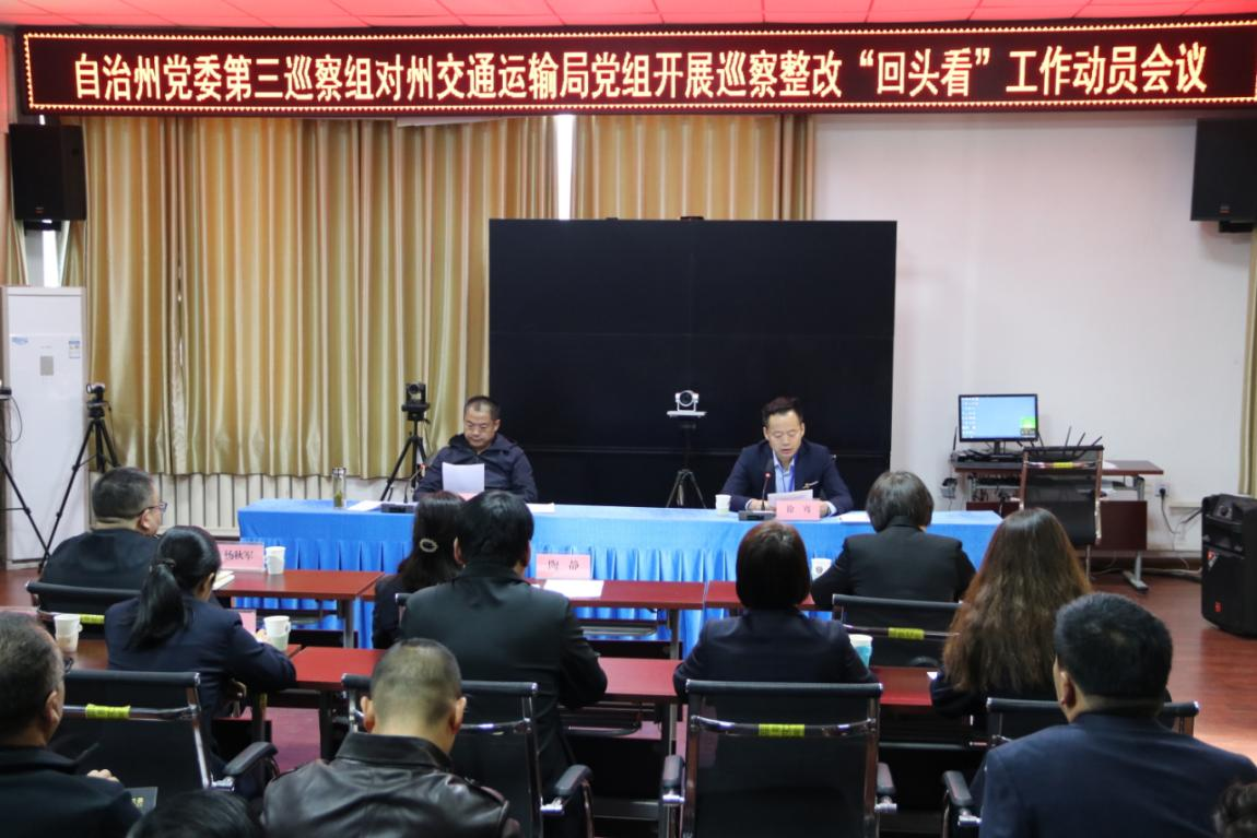 会议指出,对博州交通运输局党组开展巡察整改“回头看”工作,主要任务是深入学习贯彻习近平新时代中国特色社会主义思想,特别是习近平总书记关于党的自我革命的重要思想和巡视工作的重要论述,全面落实自治区巡视巡察工作会议和十三届自治州党委第八轮巡察工作动员部署会精神,进一步统一思想、提高站位,明确任务、凝聚共识,为完成好本次巡察整改“回头看”工作打好基础。要深学细悟习近平总书记关于巡视整改工作重要论述,充分认识开展巡察整改“回头看”的重要性。坚持同题共答,切实增强自觉接受监督的政治意识,共同完成好自治州党委交办的政治任务。