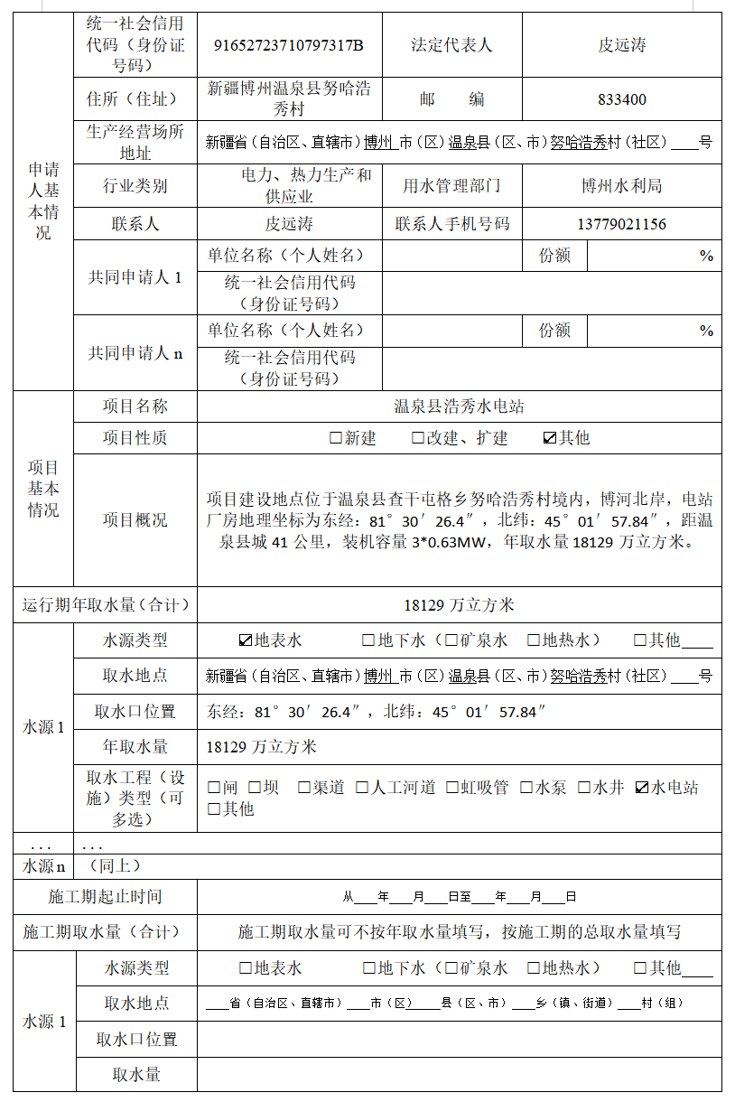 温泉县浩秀发电有限责任公司于2024年11月19日向自治州水利局提交了《项目取水工程(设施)验收申请表》等材料,经研究,拟同意办理取水许可。根据《取水许可和水资源费征收管理条例》《新疆维吾尔自治区取水许可管理办法》等相关规定,现对该项目取水许可进行公告(附件)。若对取水许可有异议的,可在公告之日起五日内以书面形式向自治州水利局提出意见。