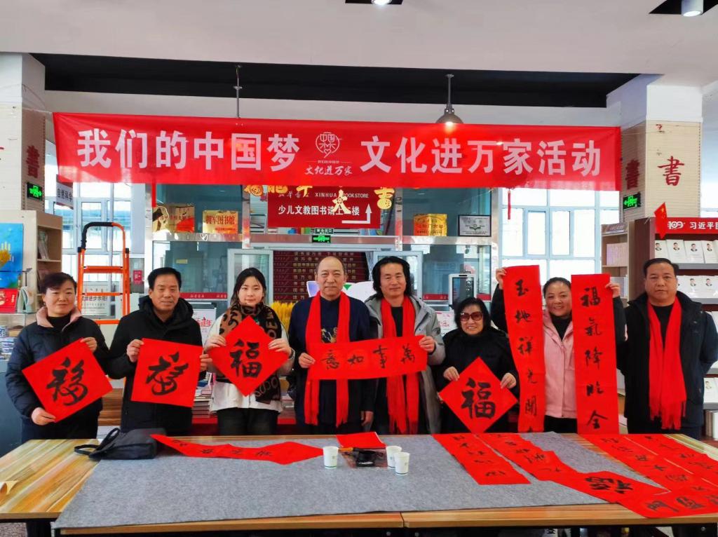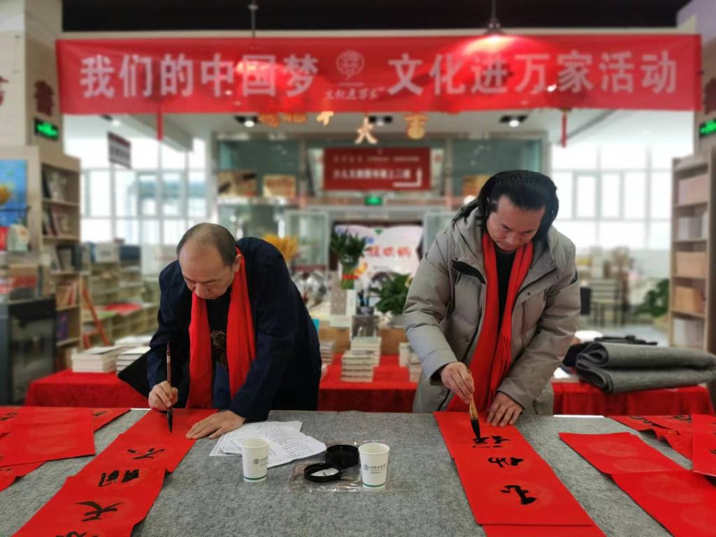 1月18日,博州书画院(美术馆)组织书法家们走进博州新华书店、青河社区、华庭社区开展“我们的中国梦—文化进万家”写春联送春联活动,免费为群众写春联,把浓浓的年味儿和新春的祝福送到居民的手中。活动中,一张张红色春联慢慢铺开,书法老师挥毫泼墨,一幅幅散发清新墨香的喜庆大红春联和“福”字展现在大家眼前,充满了浓浓的年味,洋溢着的喜庆氛围。