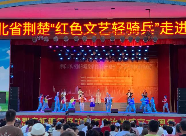 7月17日,在博州建州70周年来临之际,湖北省荆楚红色文艺轻骑兵团队在博乐市西部文化广场,为各族群众带来了一场丰富多彩的文化盛宴。