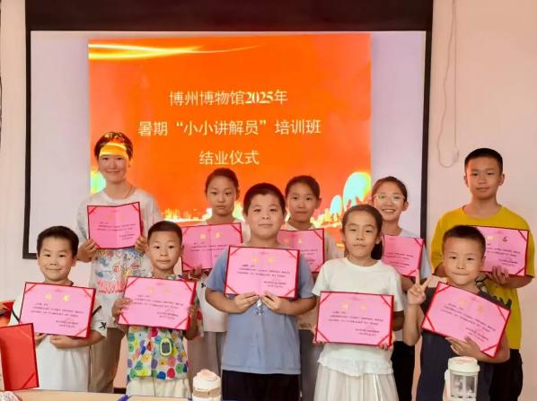 本次培训课程内容丰富、形式多样,涵盖了历史文化知识讲解、普通话发音与表达技巧、讲解礼仪与形体训练、现场实践等多个方面。通过趣味讲座、互动问答等形式,讲解博物馆馆藏文物背后的故事,经过培训,孩子们用童声让文物说话,让历史发声,当参观者为他们的讲解鼓掌时,历史的种子已悄悄在新一代心中发芽。本次培训是博州博物馆推进青少年文化教育的重要举措。在结业仪式上,博州博物馆分别为学生颁发了培训结业证书与小小讲解员志愿者聘书,并邀请“小小讲解员”们参与到周末、节假日的志愿讲解活动中,让孩子们在实践中继续深化对历史文化的理解,同时为博物馆注入青春活力。