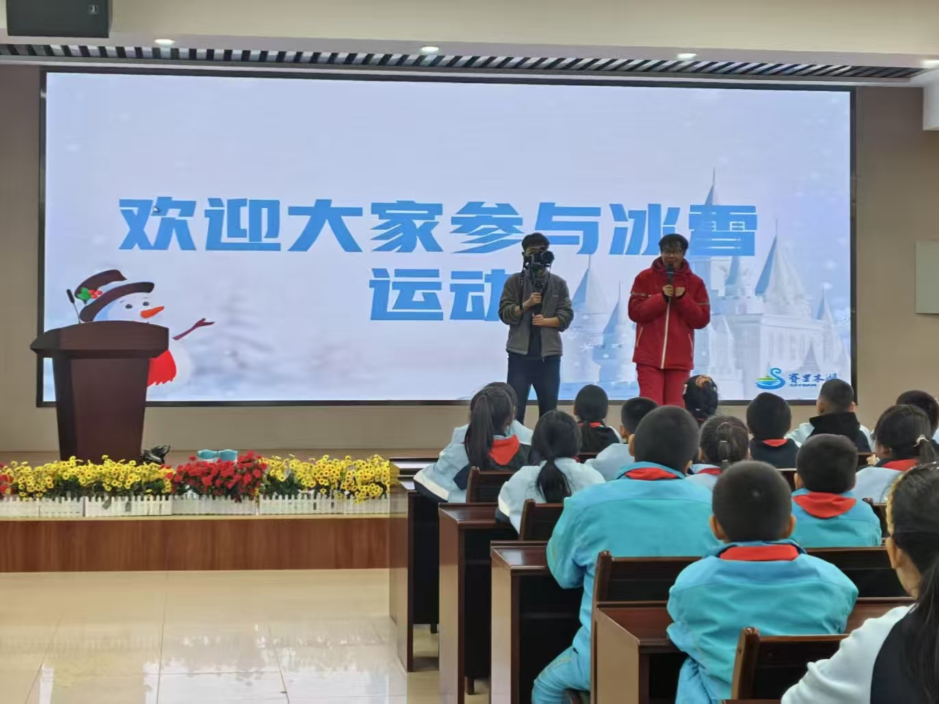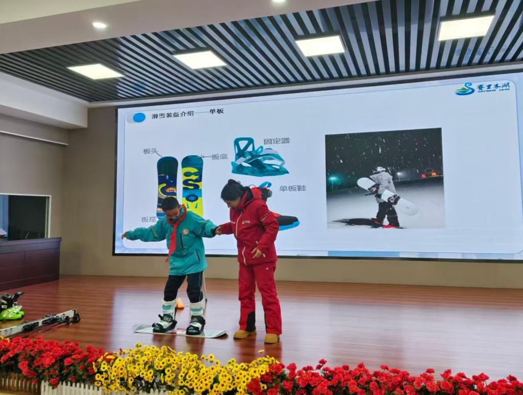 为深入贯彻落实习近平总书记关于“带动三亿人参与冰雪运动”“冰天雪地也是金山银山”的重要指示精神,全面落实自治区、自治州关于推动冰雪运动和冰雪旅游高质量发展的决策部署,2025年11月24日,博州文体广旅局联合州教育局组织开展了“冰雪进校园”理论宣讲系列活动。本次活动依托赛里木湖滑雪场的专业资源,面向全州中小学校普及冰雪知识、激发青少年参与热情,取得良好成效。