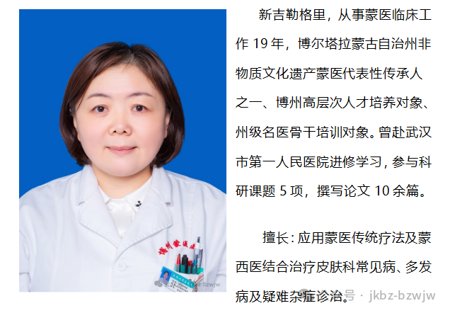 近日,国家中医药管理局公布了第二批全国少数民族医优秀人才研修项目培养对象名单,博州蒙医医院皮肤科主任医师新吉勒格里喜提上榜。
