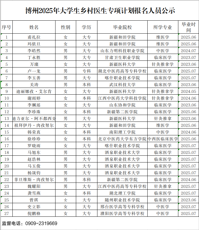 上一条:博州2025年大学生乡村医生专项计划笔试成绩公示 下一条:博尔塔拉蒙古自治州2025年大学生乡村医生专项计划招聘公告