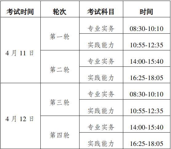 2026年护士执业资格考试继续采用人机对话考试方式,定于2026年4月11、12日举行,每半天为一个轮次,分为4个轮次依次进行,考生将随机分配至其中一个轮次,参加专业实务和实践能力两个科目的考试,具体安排如下: