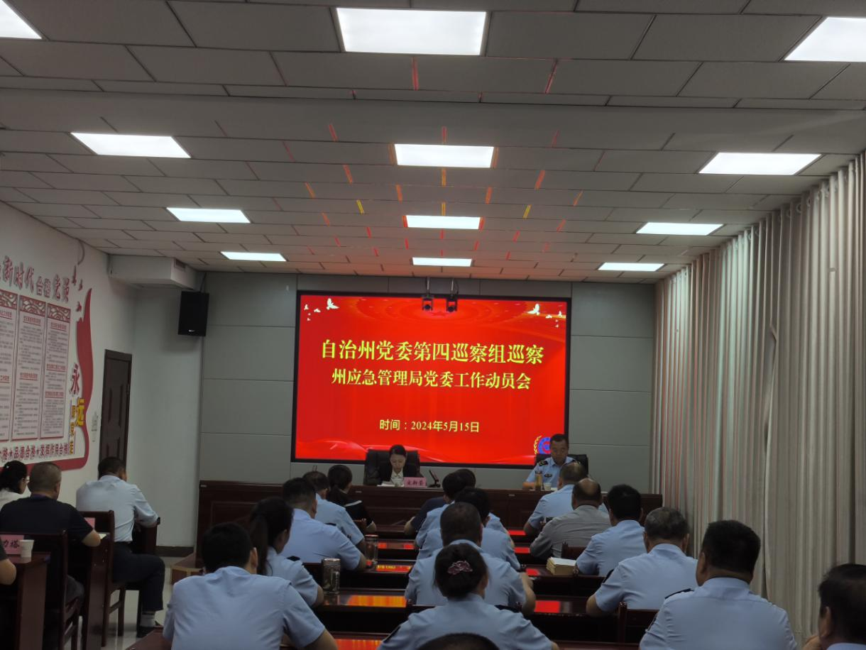 自治州党委第四巡察组副组长及组员,自治州纪委监委派驻州政办纪检监察组副组长,州党委组织部选人用人专项检查组、州党委宣传部意识形态工作责任制专项检查组、州党委机要保密局保密工作专项检查组人员,州应急管理局党委领导班子成员出席会议,机关事业单位全体干部职工和相关企业代表列席会议。