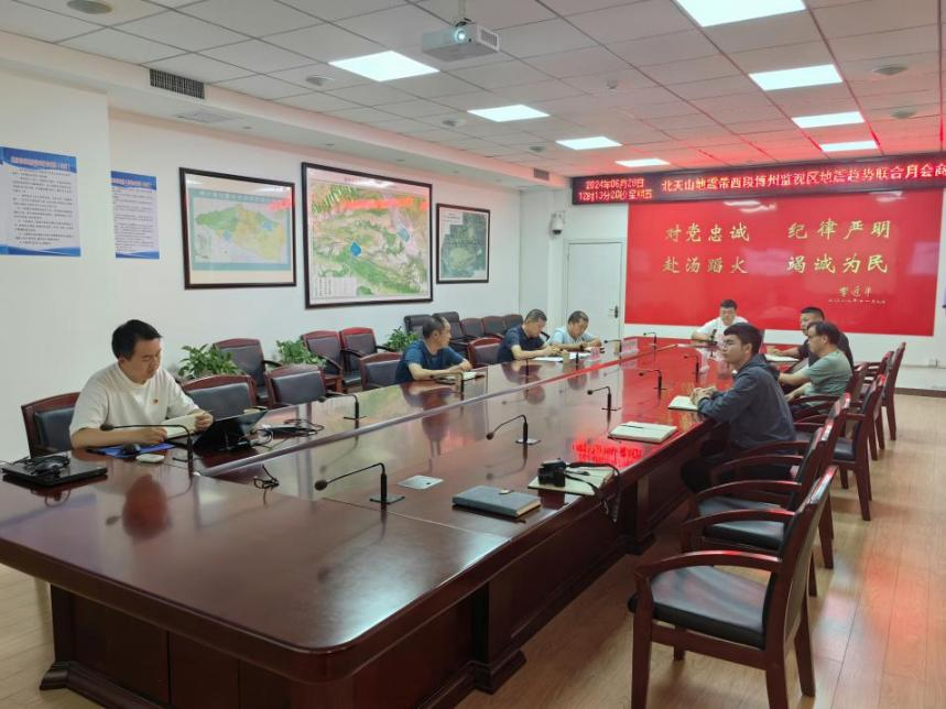 首先,博州防震减灾中心负责人介绍了与专业台站联合召开地震趋势会商的目的,强调了协同做好辖区监测预报工作的重要性。会上,地震分析预报人员就监视区内未来1个月或稍长一段时间地震趋势、地球物理观测分析和宏观资料分析进行了汇报,并就地震趋势判定意见展开分析与讨论。