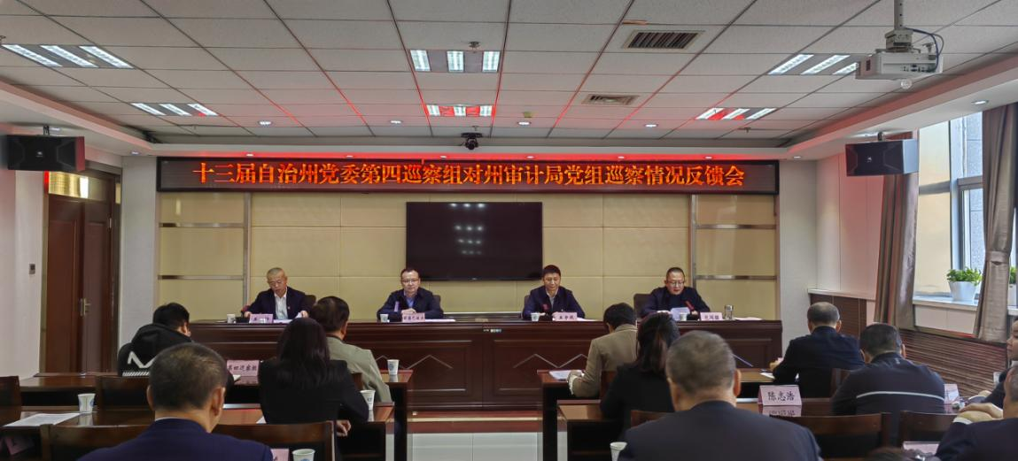 根据自治州党委统一部署,2024年10月8日至10月30日,自治州党委第四巡察组对州审计局党组开展了巡察整改“回头看”。2024年11月26日,州党委第四巡察组巡察州审计局反馈会在州审计局大会议室召开。自治州党委第四巡察组组长王坤代表巡察组向州审计局党组反馈了巡察意见,州政府党组成员、秘书长明德巴依尔同志代表自治州政府,州党委巡察工作领导小组成员、州纪委副书记、监委副主任王宇然同志代表自治州党委巡察工作领导小组分别提出了明确要求,州审计局党组书记、副局长包闻疆主持会议并作表态发言。