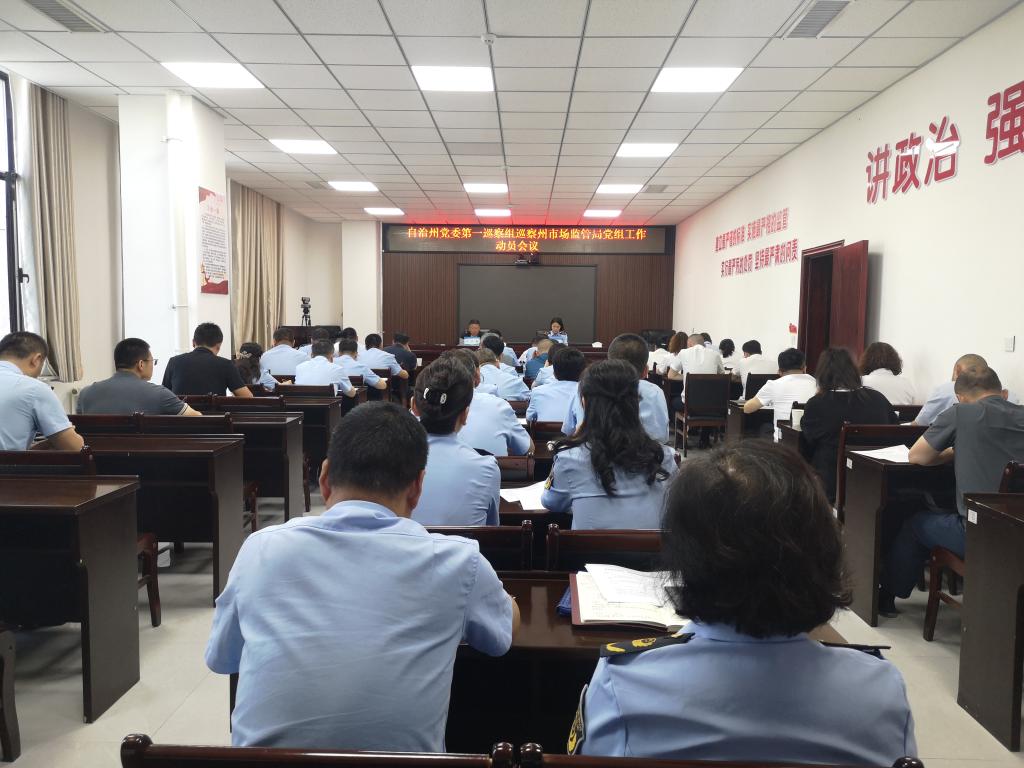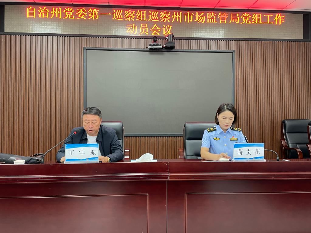 根据自治州党委巡察工作统一部署,2024年5月15日,自治州党委第一巡察组巡察自治州市场监督管理局党组工作动员会召开。会前,自治州党委第一巡察组组长丁宇振主持召开与自治州市场监督管理局党组班子成员见面沟通会,传达了自治州党委书记专题会议精神,通报了有关工作安排。动员会上,丁宇振同志作了动员讲话,对贯彻落实自治州党委第七轮常规巡察工作部署会精神、扎实做好巡察工作提出要求。自治州市场监管局党组书记蒋贵花主持会议并作表态发言。