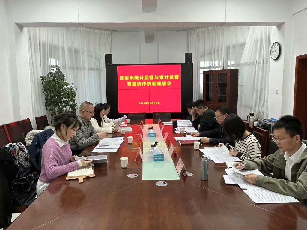 为深入贯彻落实中共中央办公厅、国务院办公厅《关于更加有效发挥统计监督职能作用的意见》,推动统计监督与审计监督统筹衔接、有机贯通,增强监督合力,提升监督效能。12月18日,博州统计局联合博州审计局就统计监督与审计监督协同配合工作进行了座谈交流。博州统计局党组书记、副局长张自贤,博州审计局党组书记、副局长包闻疆,以及双方业务科室负责同志参加了座谈。