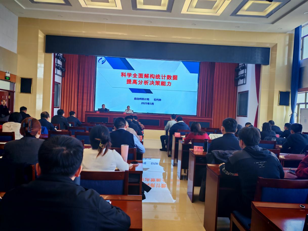 3月26日上午,博州统计局党组副书记、局长石代林同志应邀为第五师双河市党委党校中青年干部培训班学员开展专题授课。中青班学员及第五师双河市统计局全体干部共计64人参加培训。