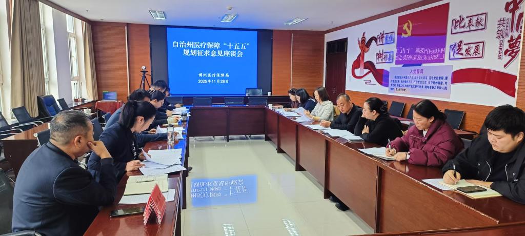 为高质量编制自治州医疗保障“十五五”规划,精准破解医保领域短板弱项,11月28日自治州医疗保障局组织召开“十五五”规划征求意见座谈会。州医保局、各县市医保局领导及相关科室负责人参加会议,共同为规划建言献策。