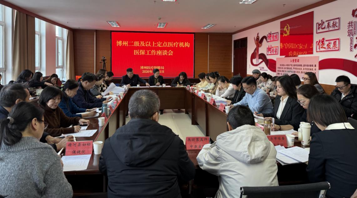座谈会上,传达了2026年国家医保局、自治区医保局工作会议精神,博州人民医院、博乐市中西医结合医院和精河县人民医院3家医疗机构进行了交流发言,自治州医保局通报2025年度医保基金使用、医保“四支付”推进和医保即时结算等工作开展情况并对2026年重点工作做了安排部署。自治州医疗保障局党组书记、局长胡晨晖同志对2025年医疗保障工作做了总结,并对2026年工作做出具体要求。