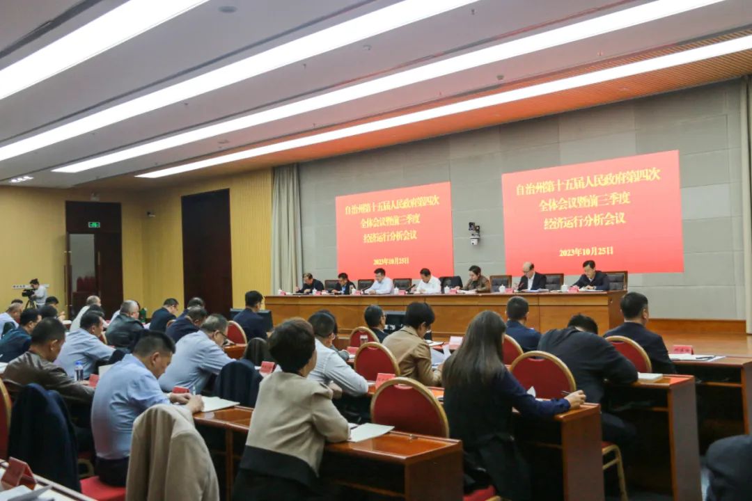 10月25日,自治州第十五届人民政府第四次全体会议暨前三季度经济运行分析会议召开。会议强调,要深入学习贯彻习近平总书记在听取自治区和兵团工作汇报时的重要讲话精神,扎实深入开展主题教育,全面贯彻落实自治区党委十届八次、九次全会精神,自治州党委十三届六次全会精神,守正创新、务实苦干,努力完成全年目标任务,全力推进自治州经济社会高质量发展。